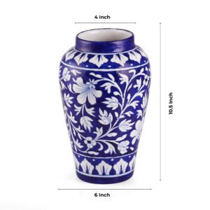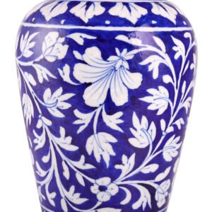This vase is an embodiment of artisanal dedication. Made from high-quality materials using the renowned blue pottery technique, it showcases the durability and appeal of handcrafted ceramics. The vibrant blue hues coupled with the intricately painted floral motifs make it a standout piece that complements various home décor styles, including modern, rustic, and eclectic designs. It’s not just a vase—it’s a masterpiece.