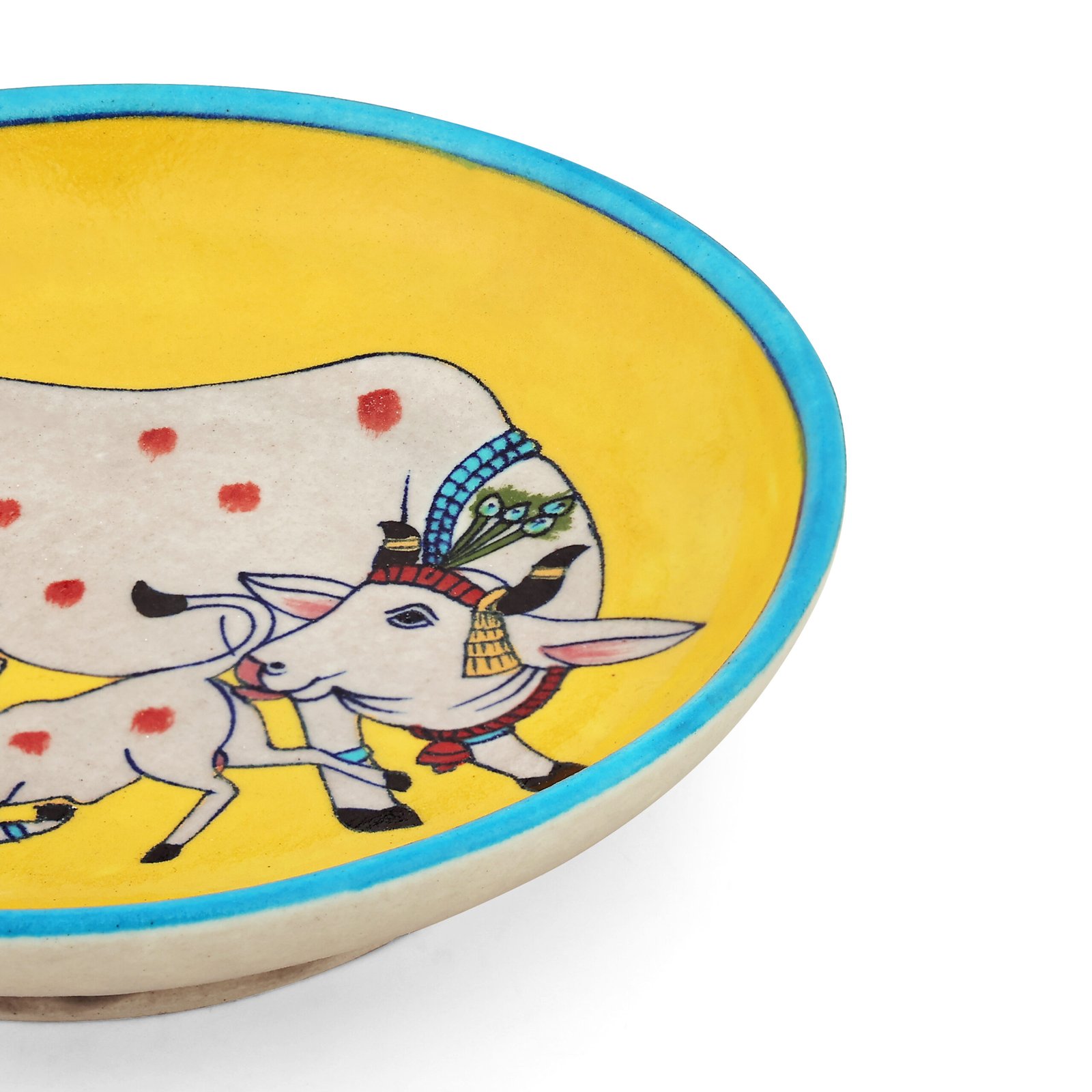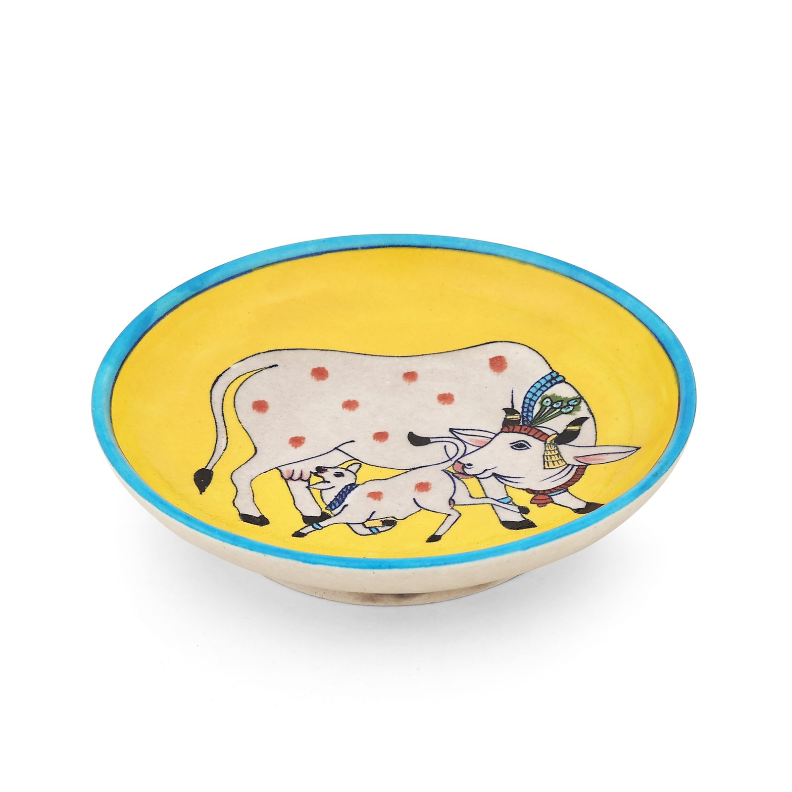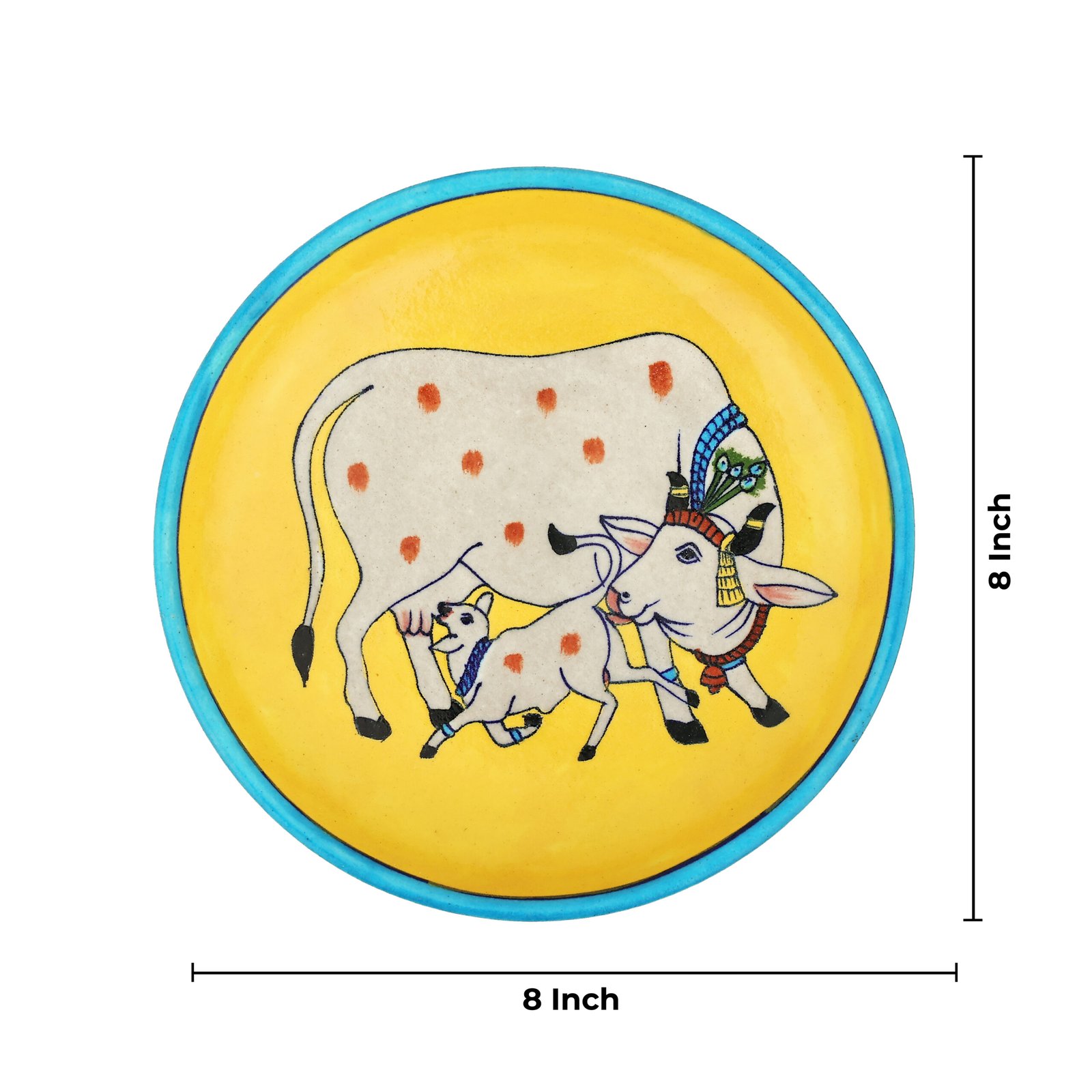 Blue Pottery Wall Plate (Cow & Calf, 8 Inch)