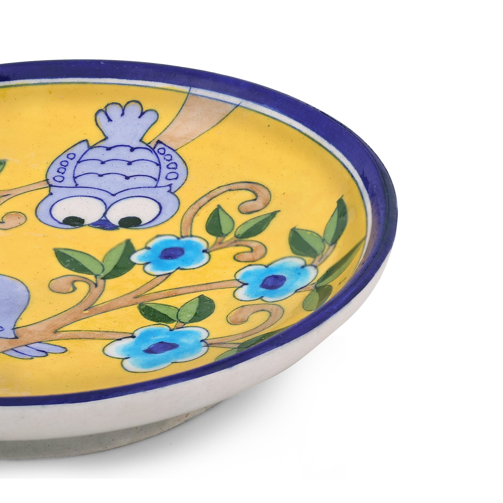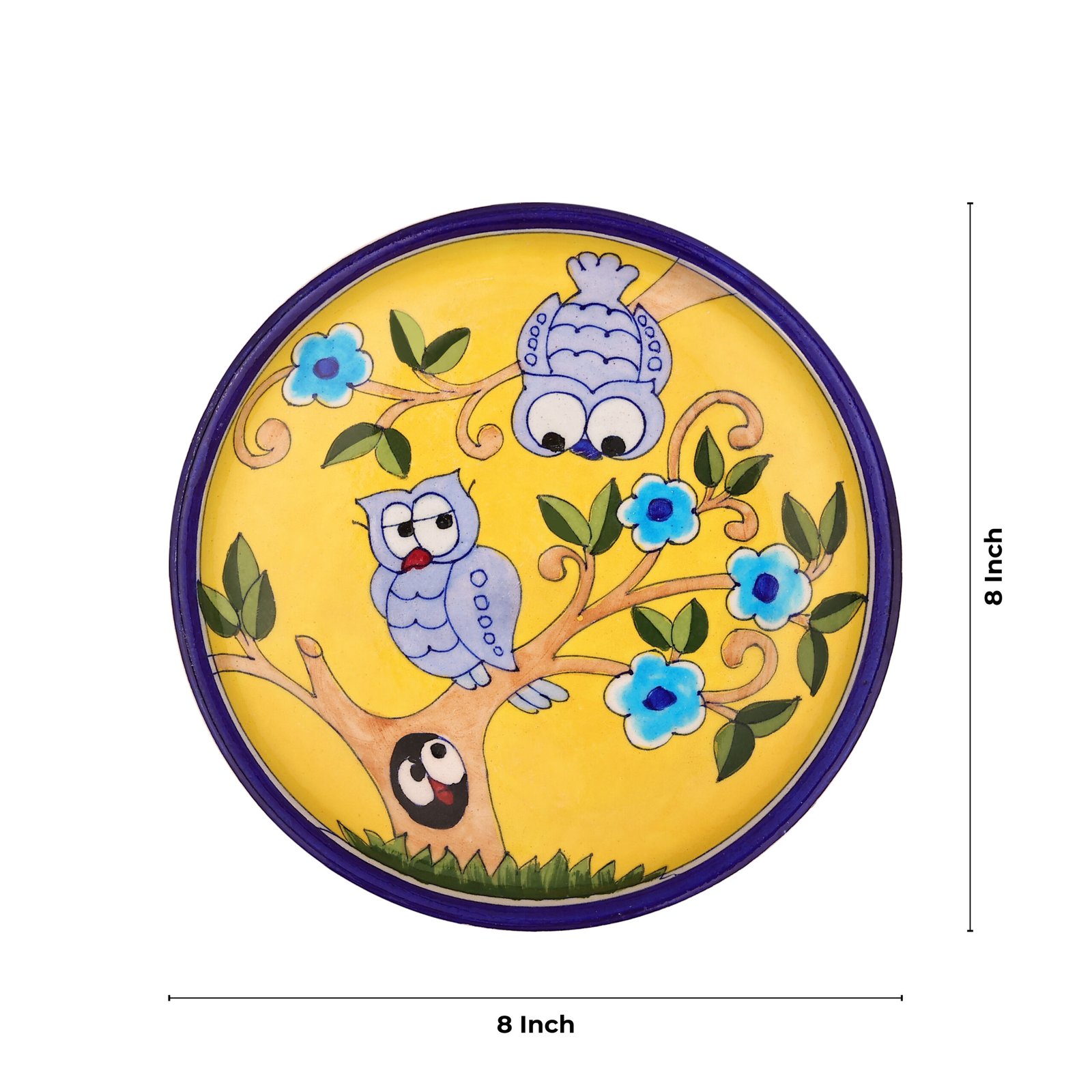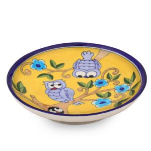 The Blue Pottery Wall Plate is not only visually appealing but also durable and eco-conscious. Created using eco-friendly materials and lead-free paints, it represents sustainable craftsmanship. Each plate is unique, with slight variations that add to its authenticity and charm. Whether used as standalone décor or part of a curated collection, its hand-painted owl design adds a whimsical yet elegant touch to your home or office.