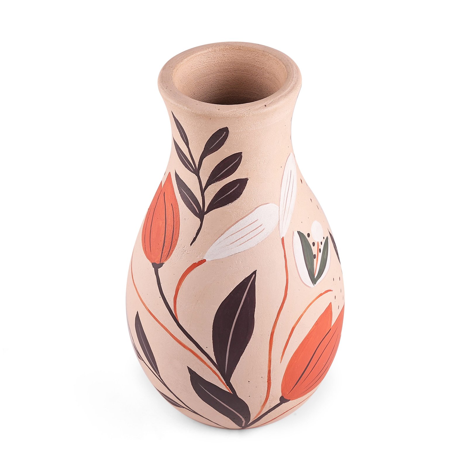 Hand-Painted Terracotta Floral Vase
